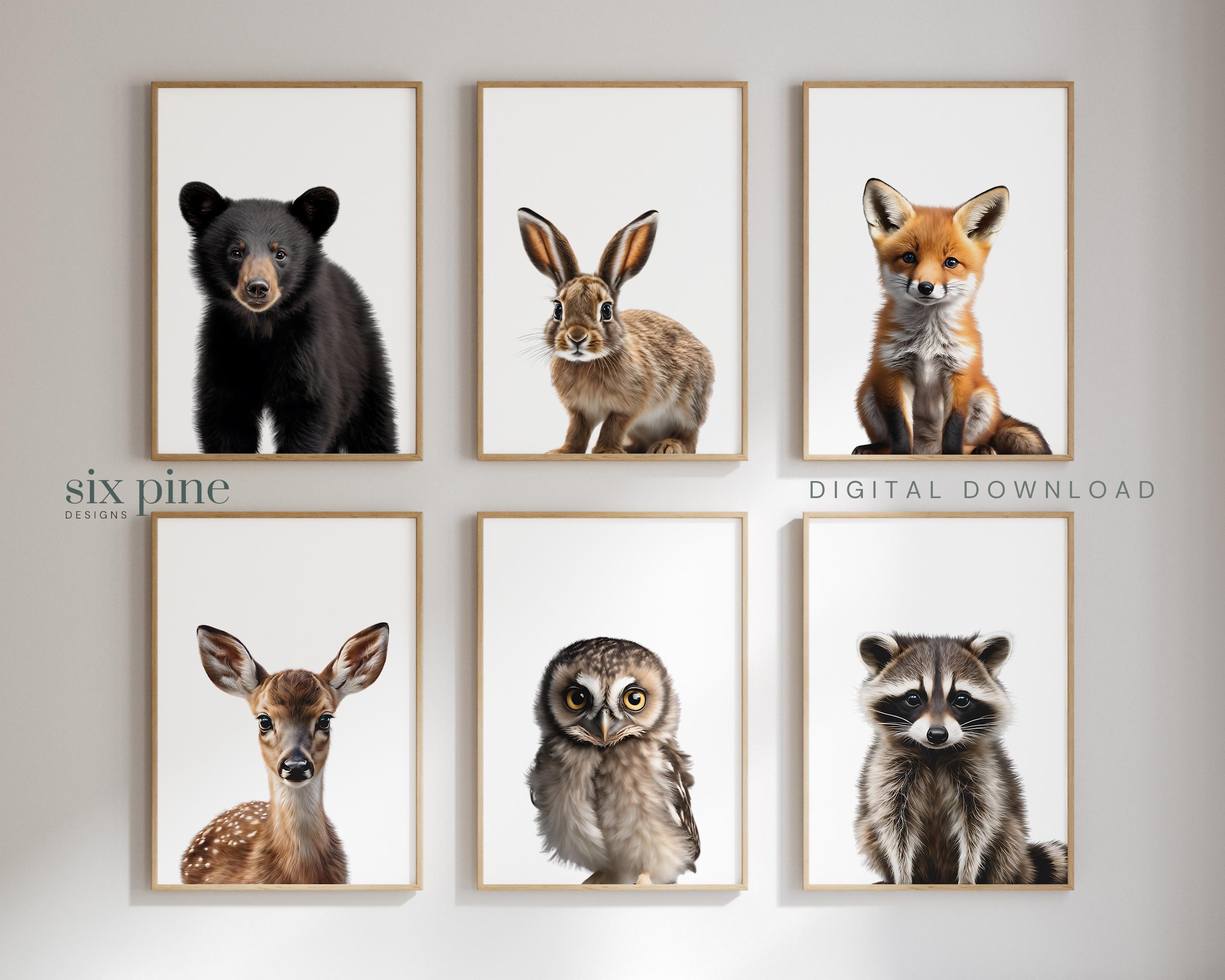 Transform your nursery or kids' room into a magical woodland wonderland with our charming set of 6 digital downloads! Featuring adorable baby animals - black bear, rabbit, fox, deer, owl, and raccoon - These delightful prints are perfect for your nursery, kids' room, playroom, or as a thoughtful gift for an expecting mom.