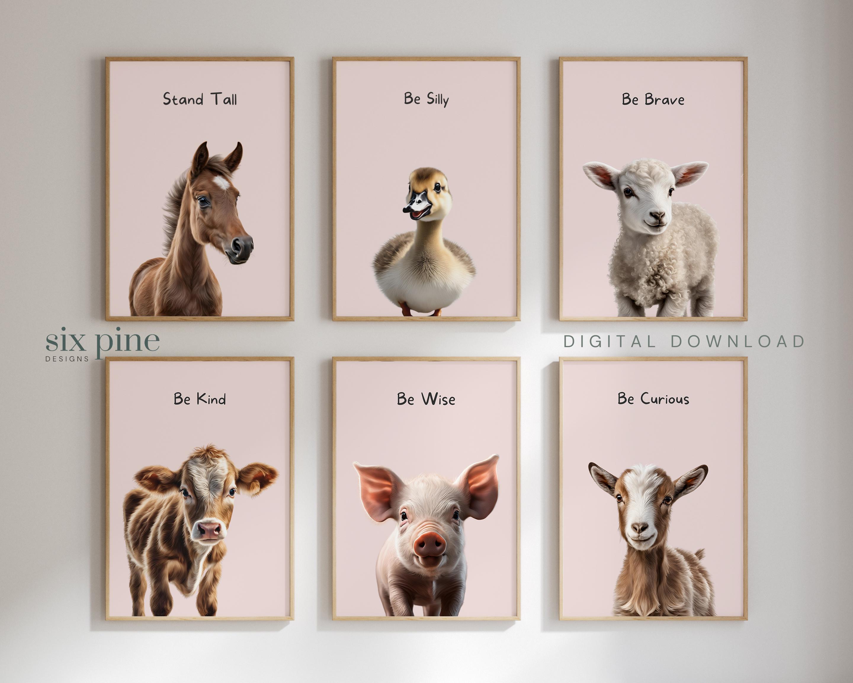Add a touch of countryside charm to your nursery or kids' room with our delightful Baby Farm Animals Print Set! This collection of 6 digital downloads features adorable baby farm animals - Sweet Baby Horse, Adorable Duckling, Gentle Lamb, Cute Baby Cow, Playful Piglet and Friendly Goat - each accompanied by a heartwarming inspirational quote. Ideal for nursery art, kids' room decor, or as a thoughtful gift for baby showers, new moms, and expecting parents.