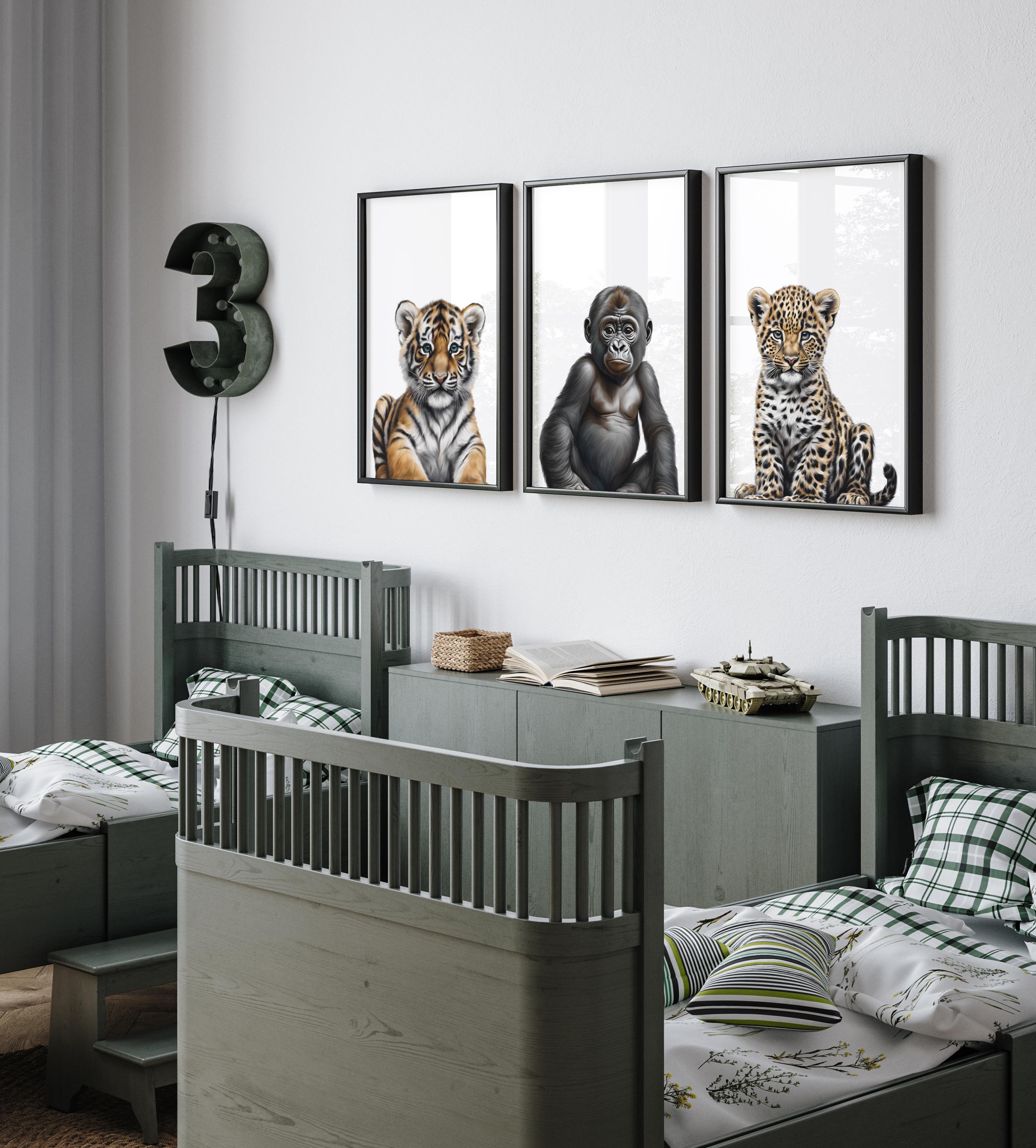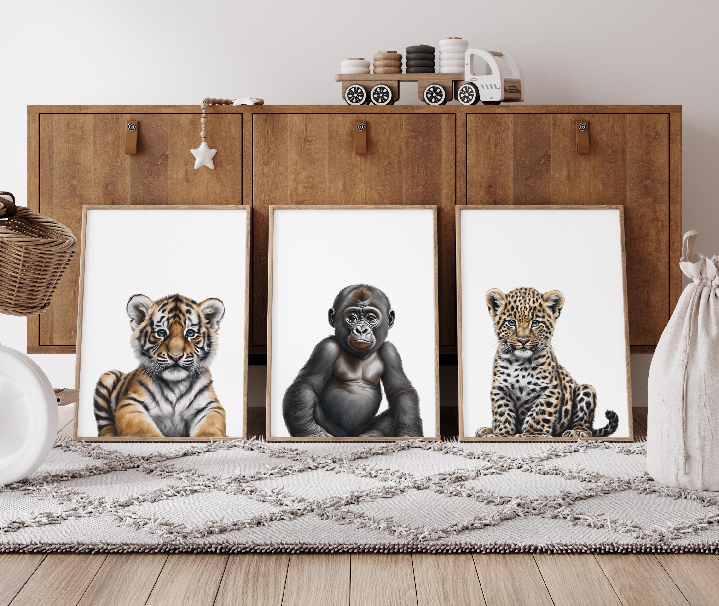 Bring the wild wonders of the jungle into your child’s room with our stunning Jungle Animal Art Set! This collection of three digital downloads features adorable baby jungle animals, including a tiger, gorilla, and leopard, beautifully illustrated on a crisp white background to seamlessly match any decor. Perfect as nursery art, kids' room decor, or a special addition your little boy's rooms, these prints are sure to spark imagination and adventure.