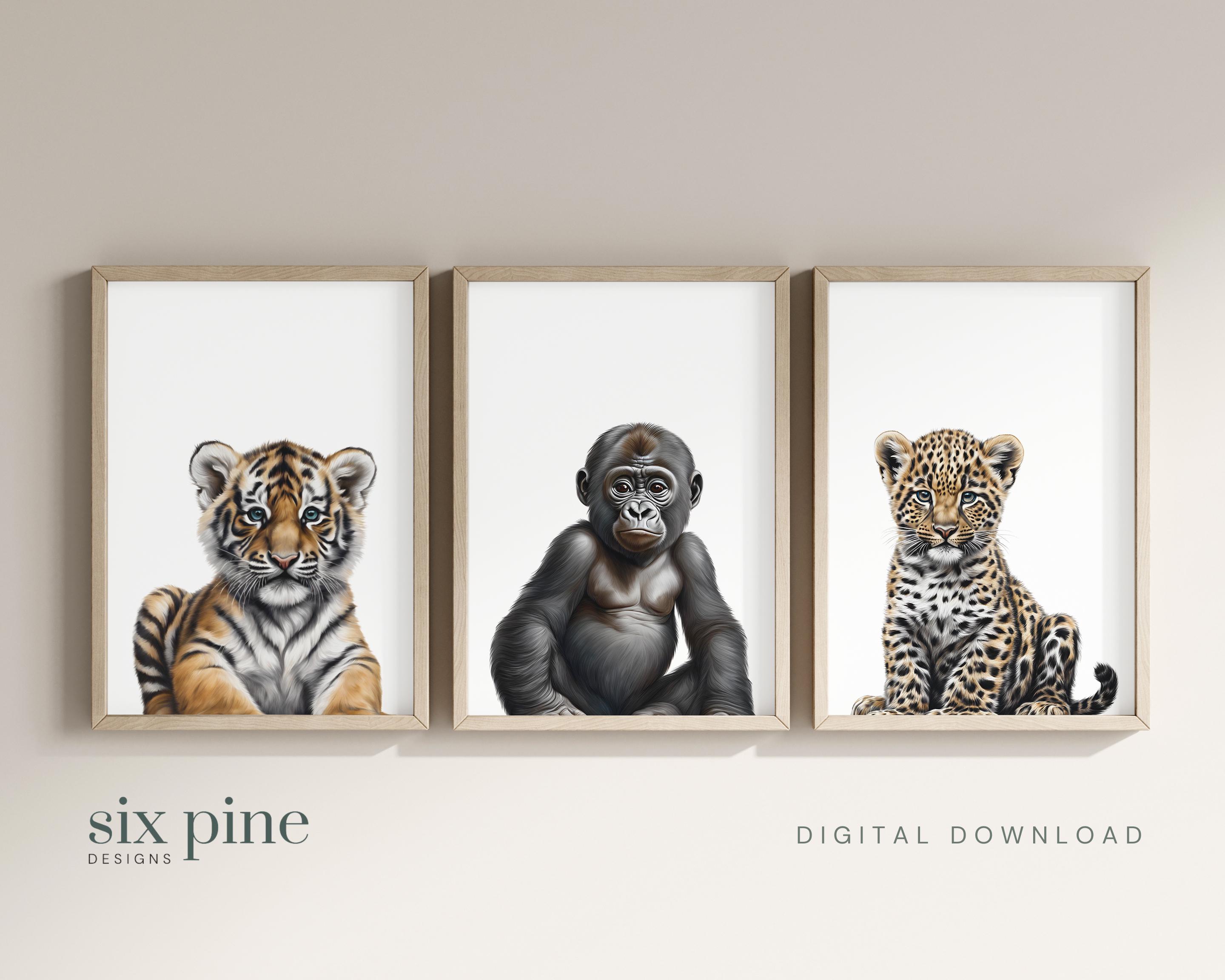 Set of 3 Baby Jungle Animal Prints in 5 different size ratios (DIGITAL DOWNLOAD) ready to download, print, frame, and enjoy!
