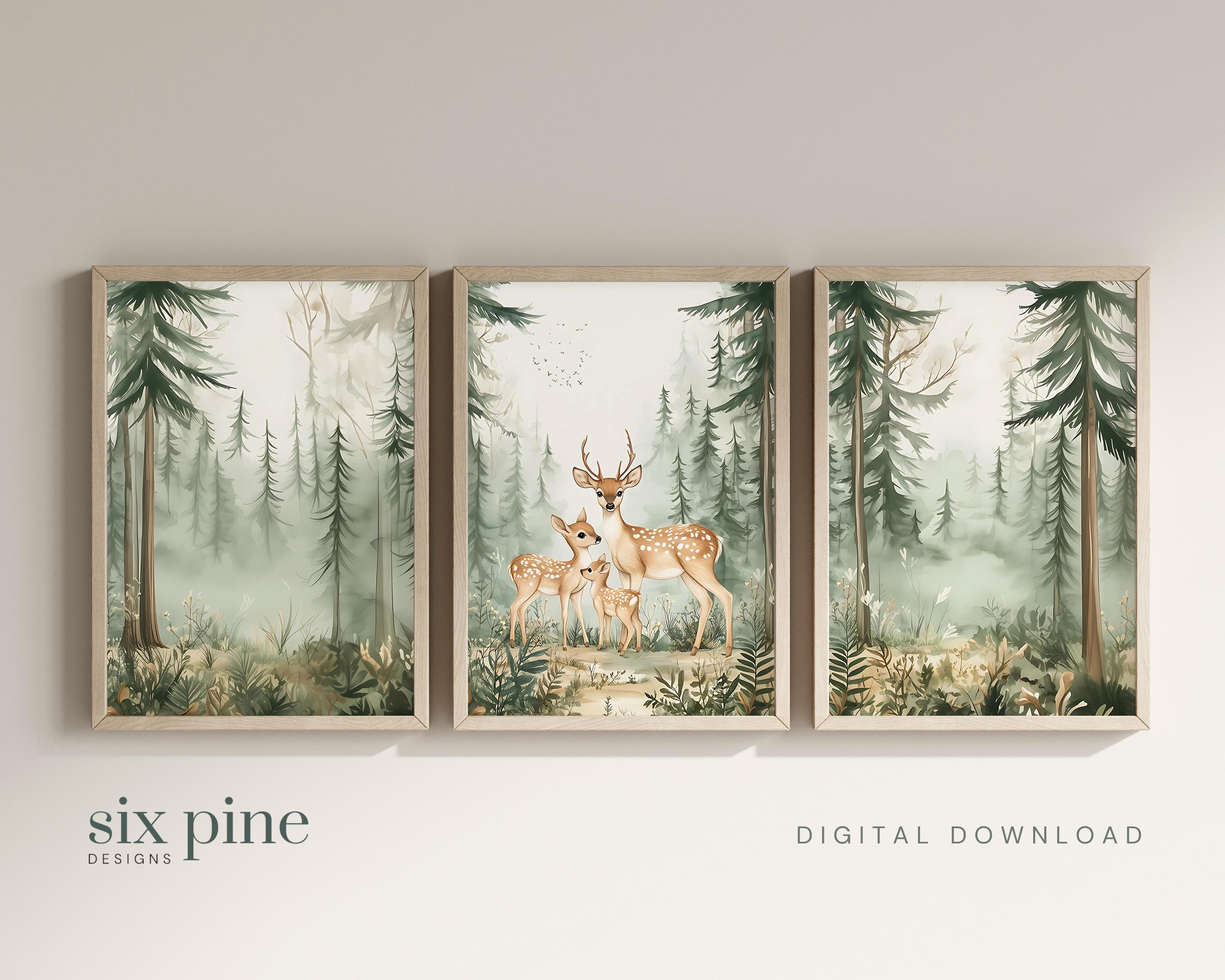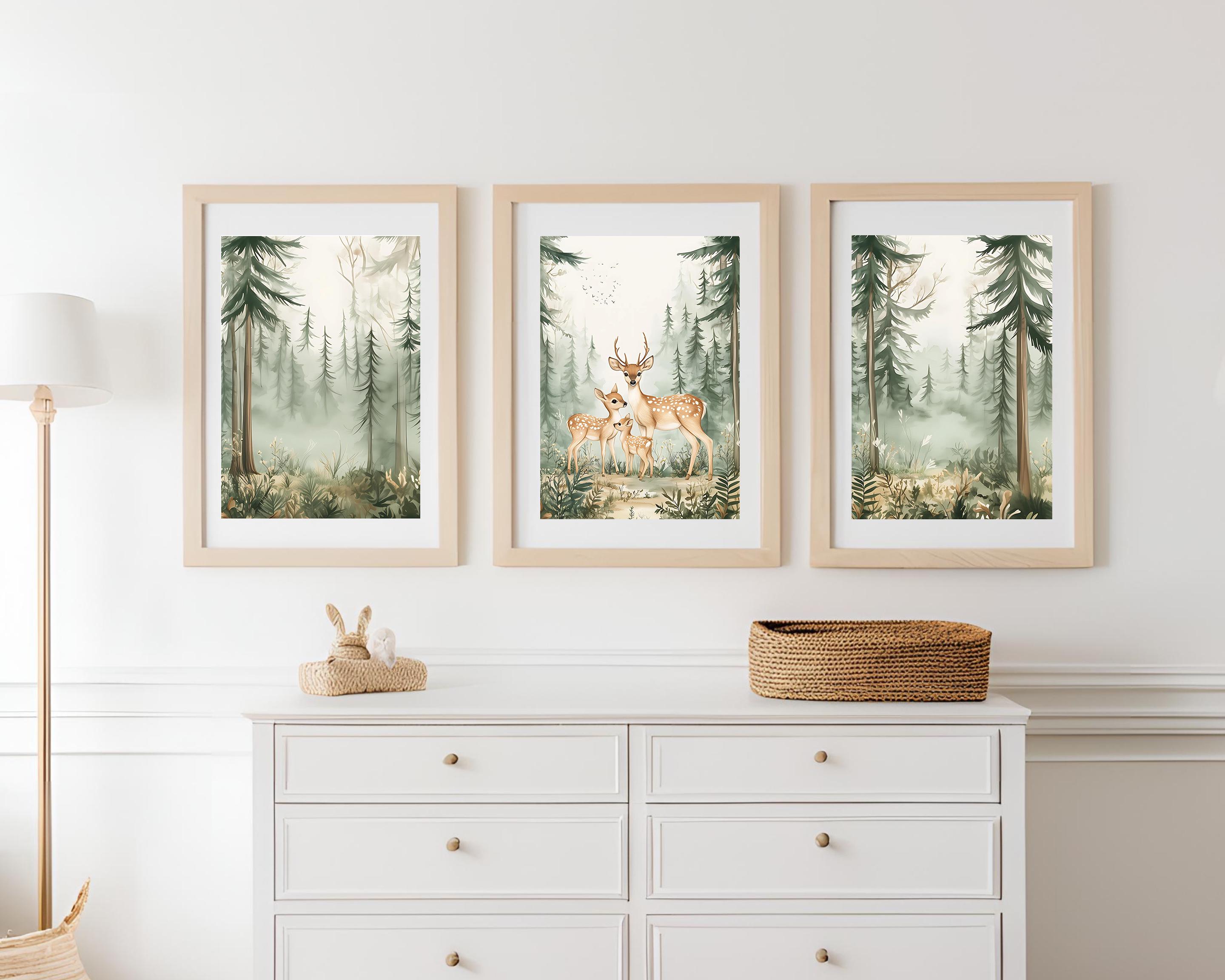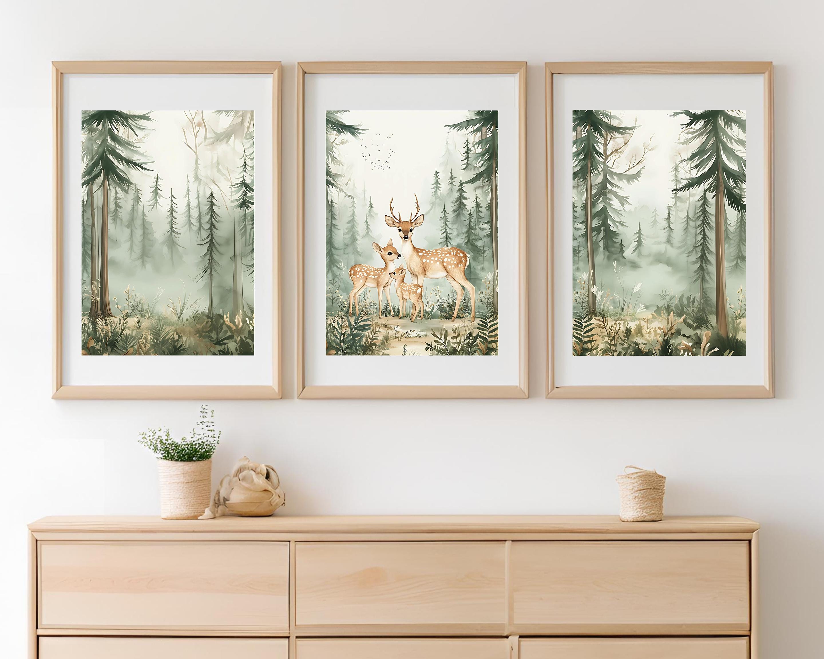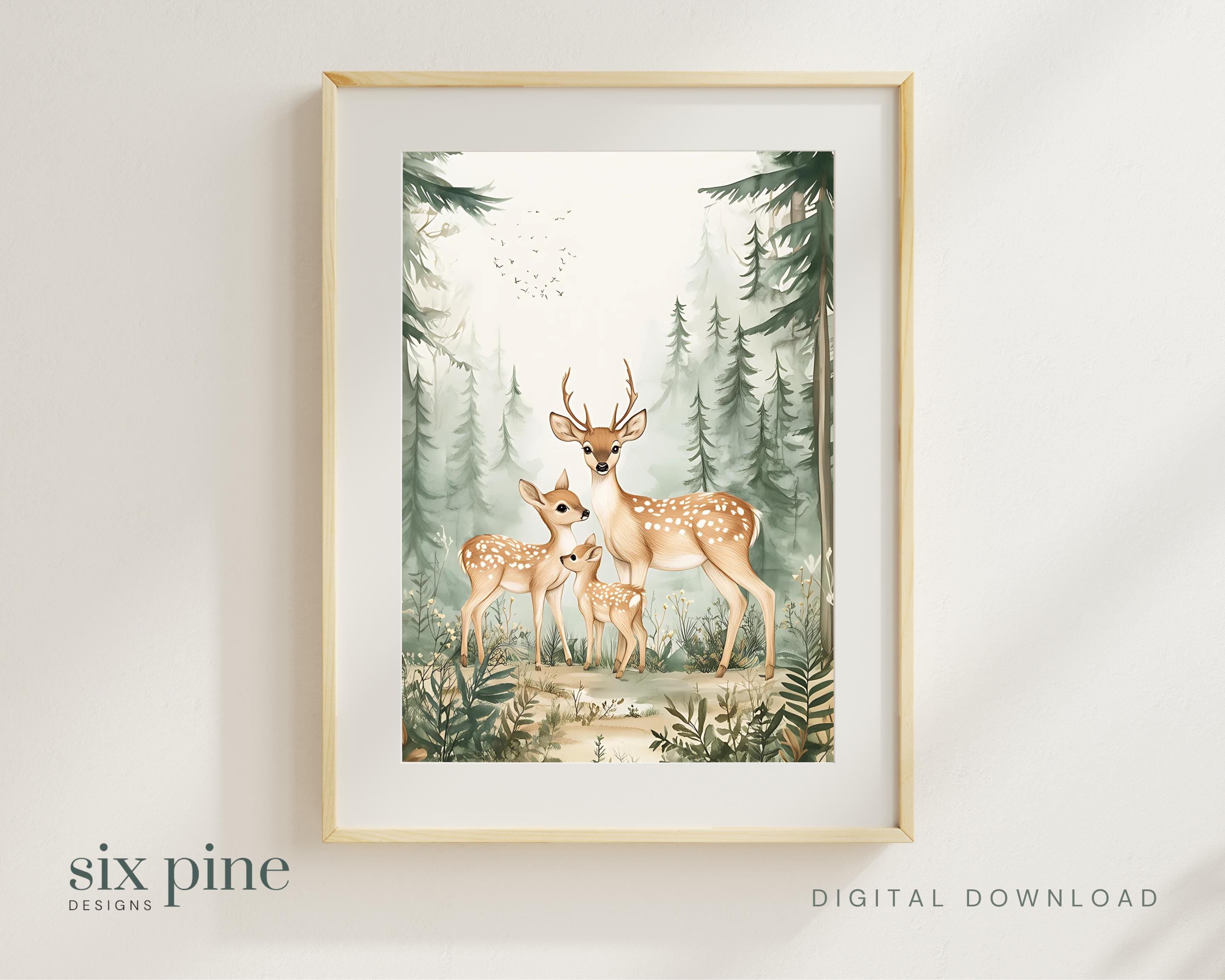 Set of 3 Deer Family Woodland Prints in 5 different size ratios (DIGITAL DOWNLOAD) ready to download, print, frame, and enjoy!