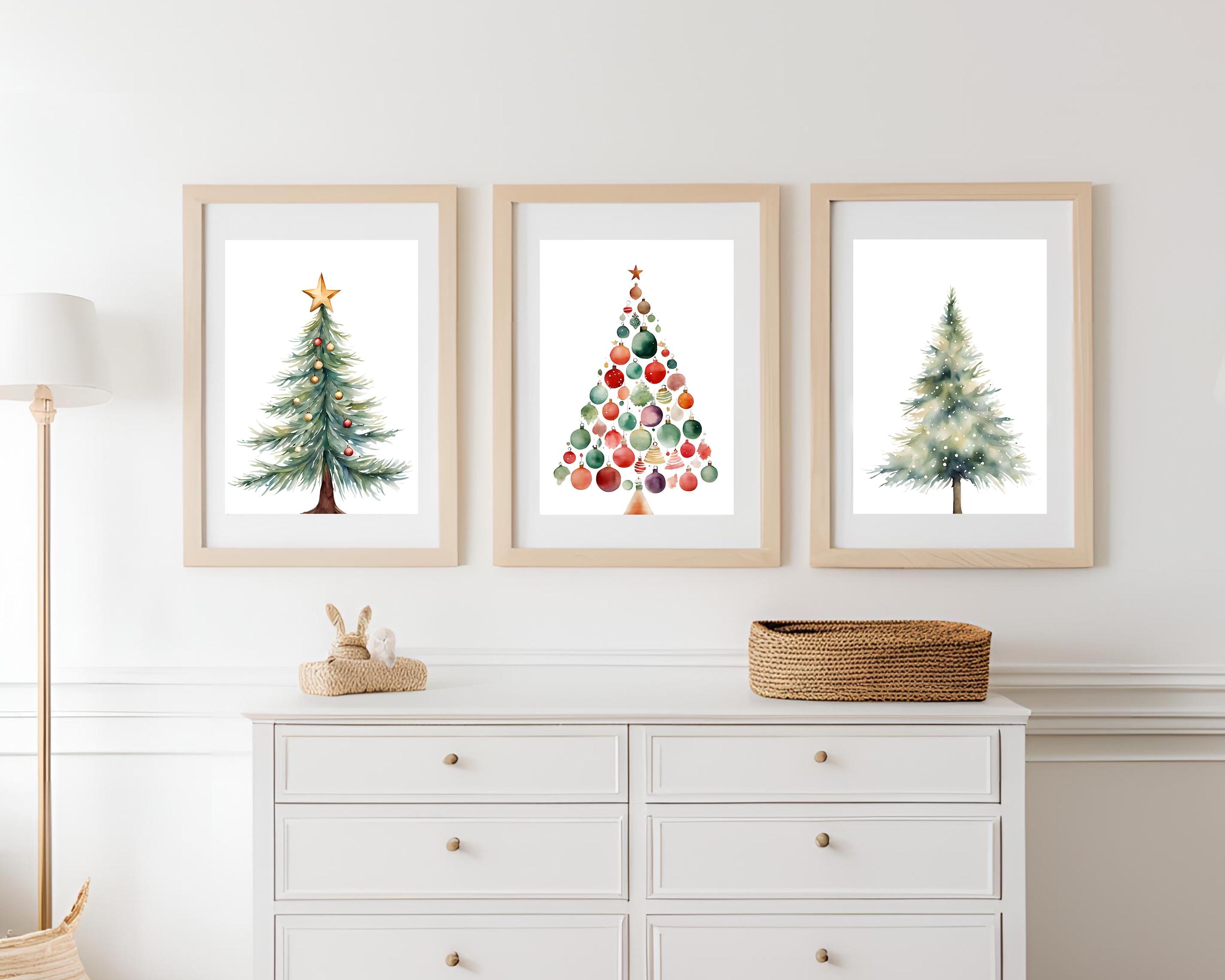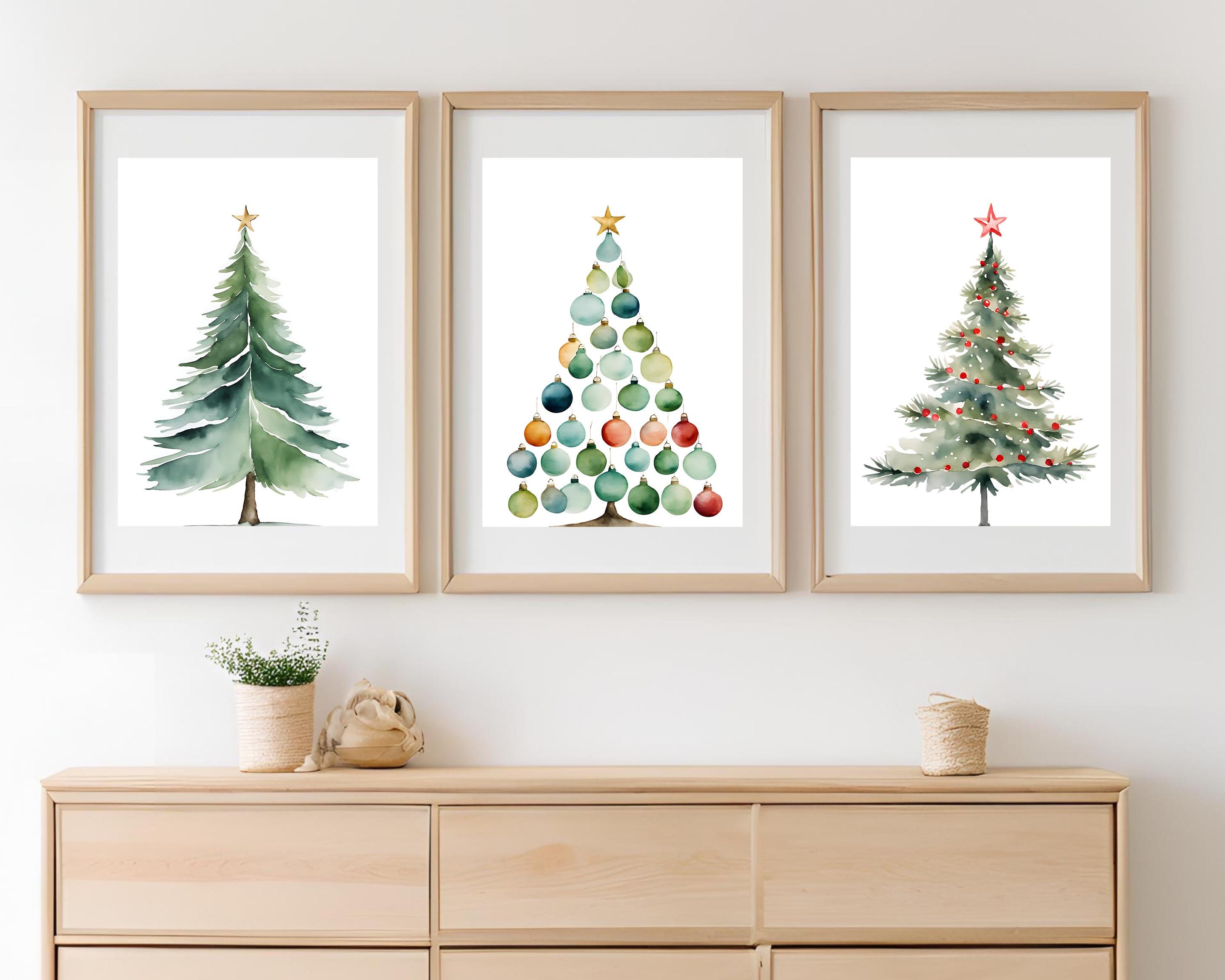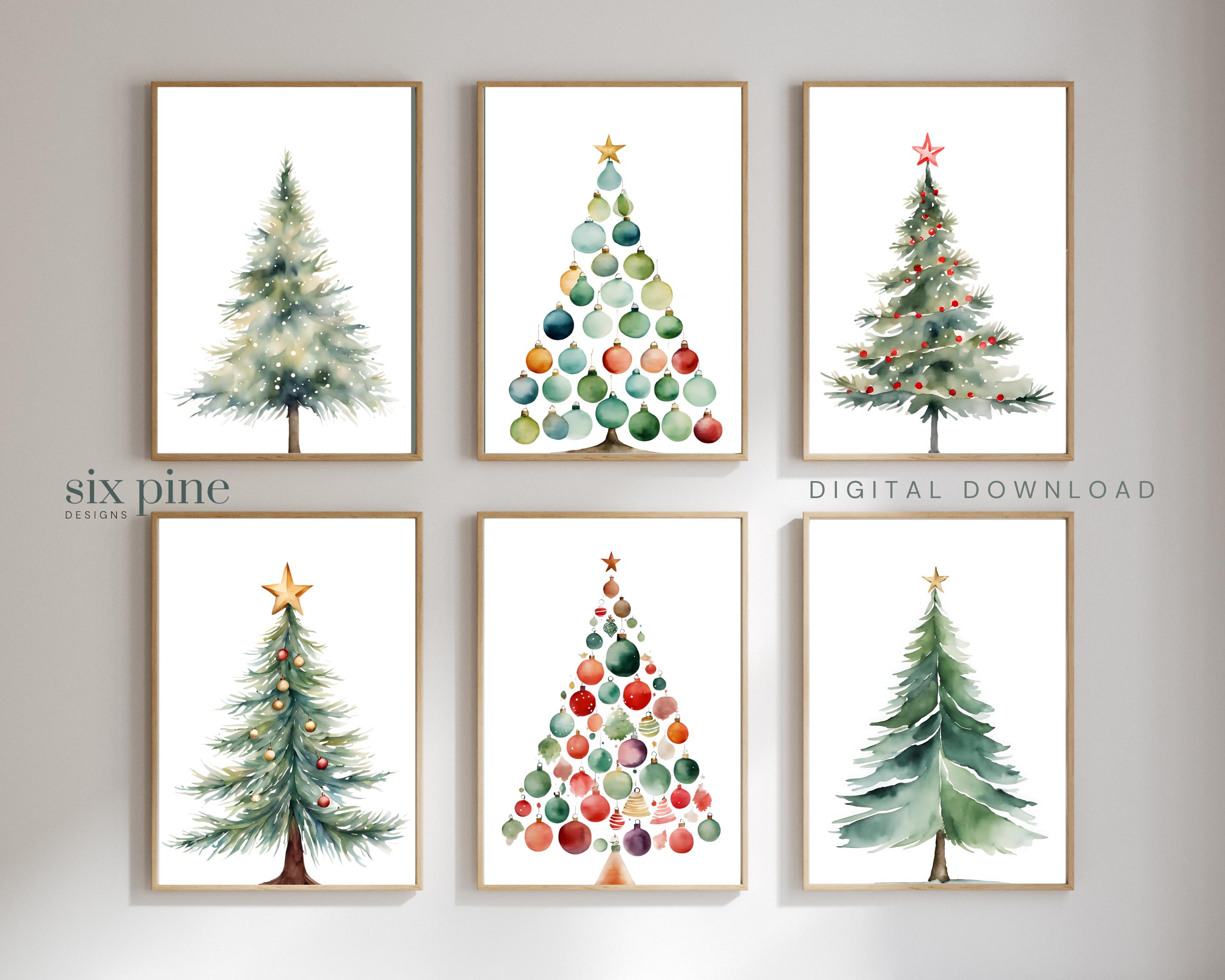 Set of 6 Watercolor Christmas Tree Prints in 5 different size ratios (DIGITAL DOWNLOAD) ready to download, print, frame, and enjoy!