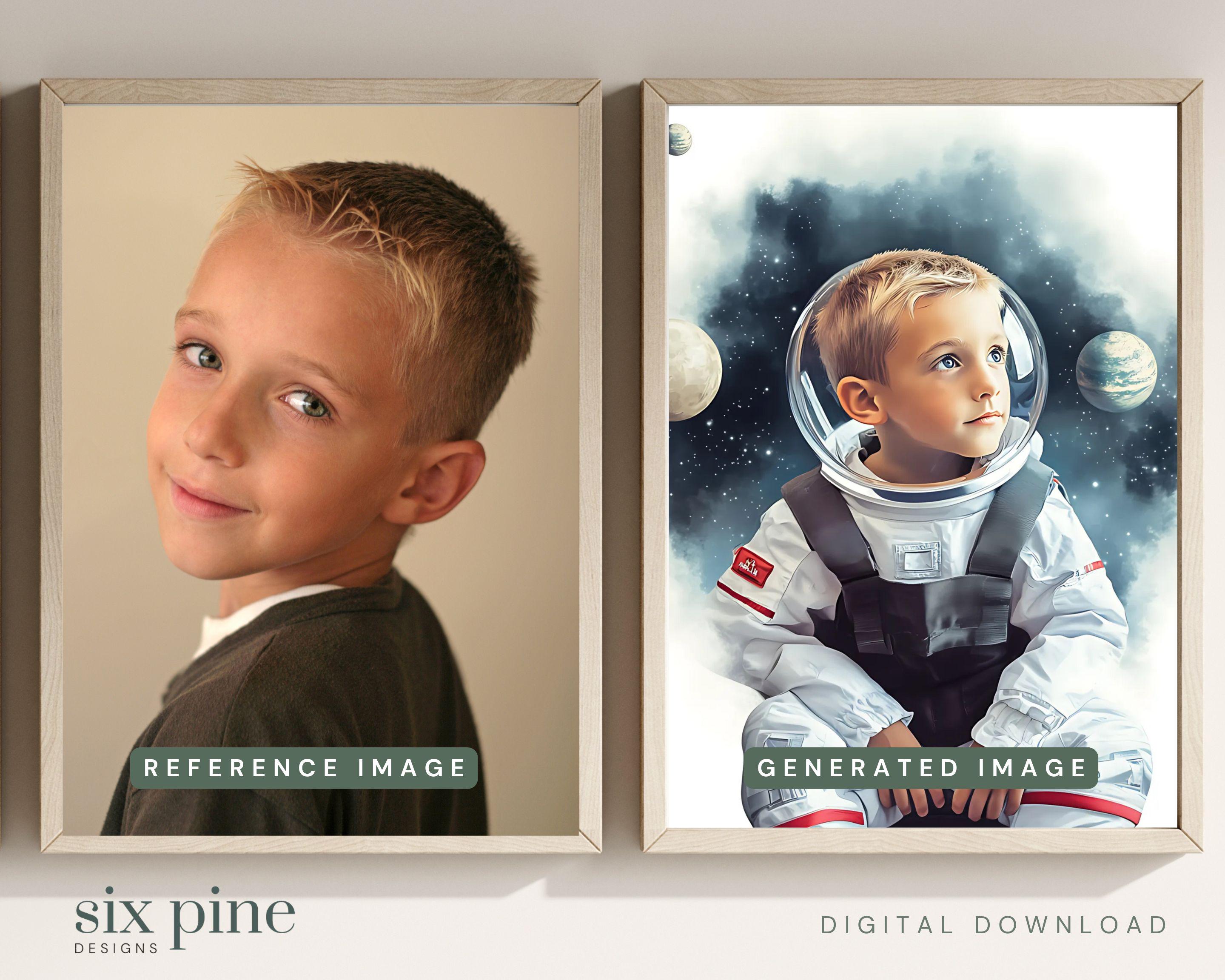 Every child dreams of becoming something extraordinary—a fearless astronaut, a brave adventurer, a woodland fairy, or even a beautiful mermaid! Now, you can bring their imagination to life with a beautifully crafted, custom AI-generated portrait that turns them into the star of their own whimsical world.