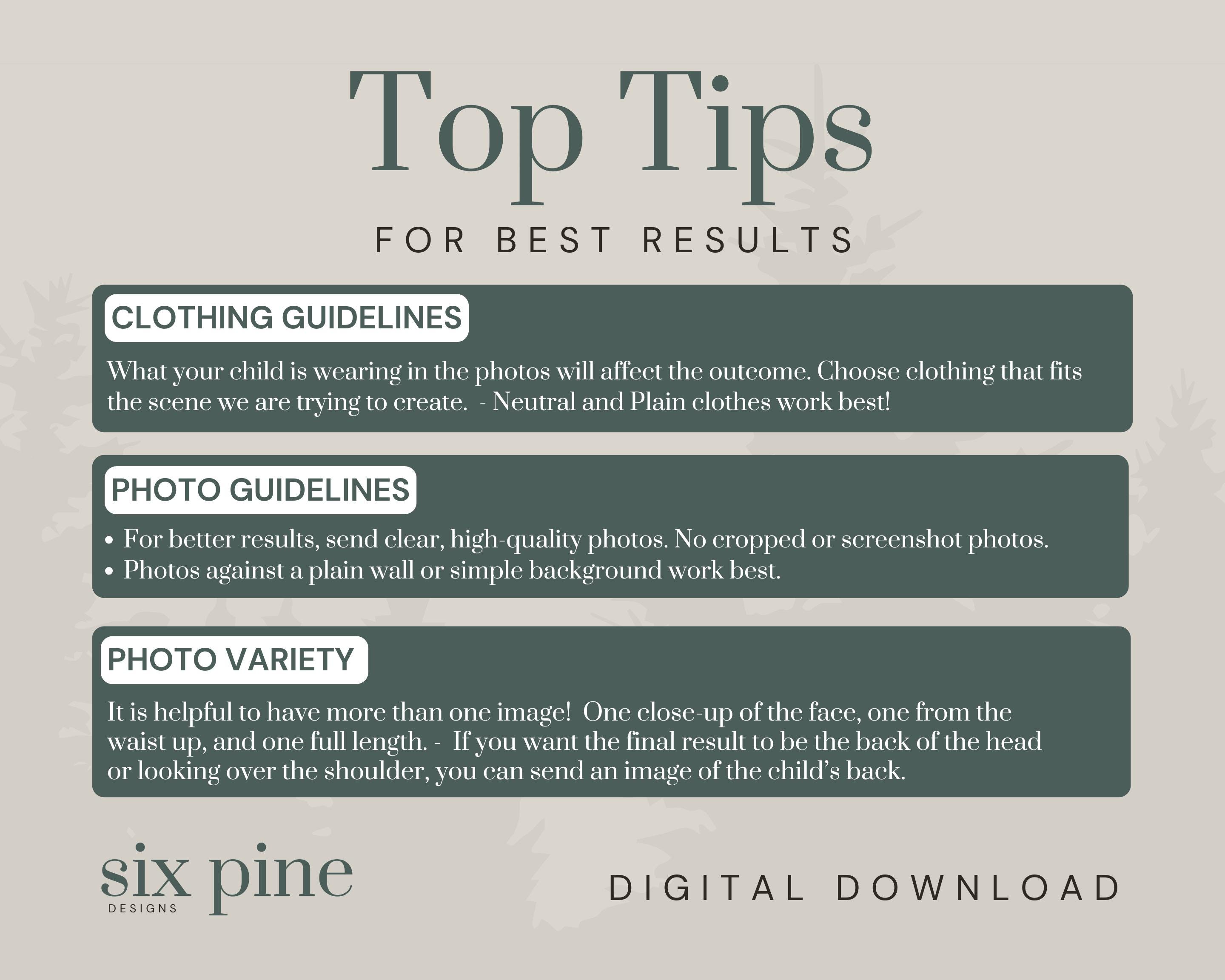 🖤 PHOTO REQUIREMENTS FOR BEST RESULTS: ⭑ Clear, high-resolution image (not blurry or pixelated). ⭑ Good lighting—natural daylight is best! ⭑ Front-facing or slight-angle photo (not too far or cropped). ⭑ Neutral expressions or gentle smiles work best!
