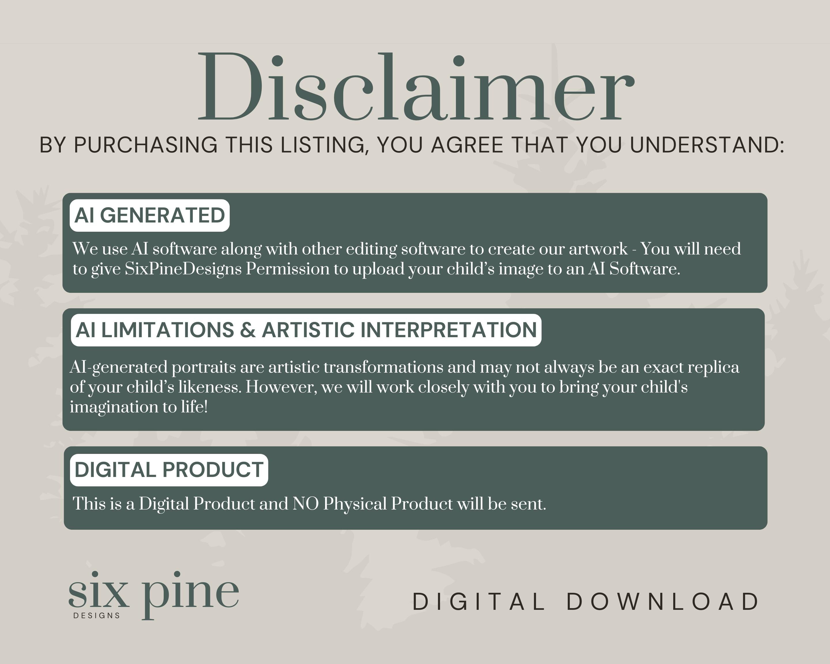 • AI art is an artistic interpretation and may not replicate every detail exactly. • The clothing in the reference photo can impact the final result (especially colors and patterns). • Some minor variations may occur, and adjustments are limited to refining the generated artwork rather than major structural changes.