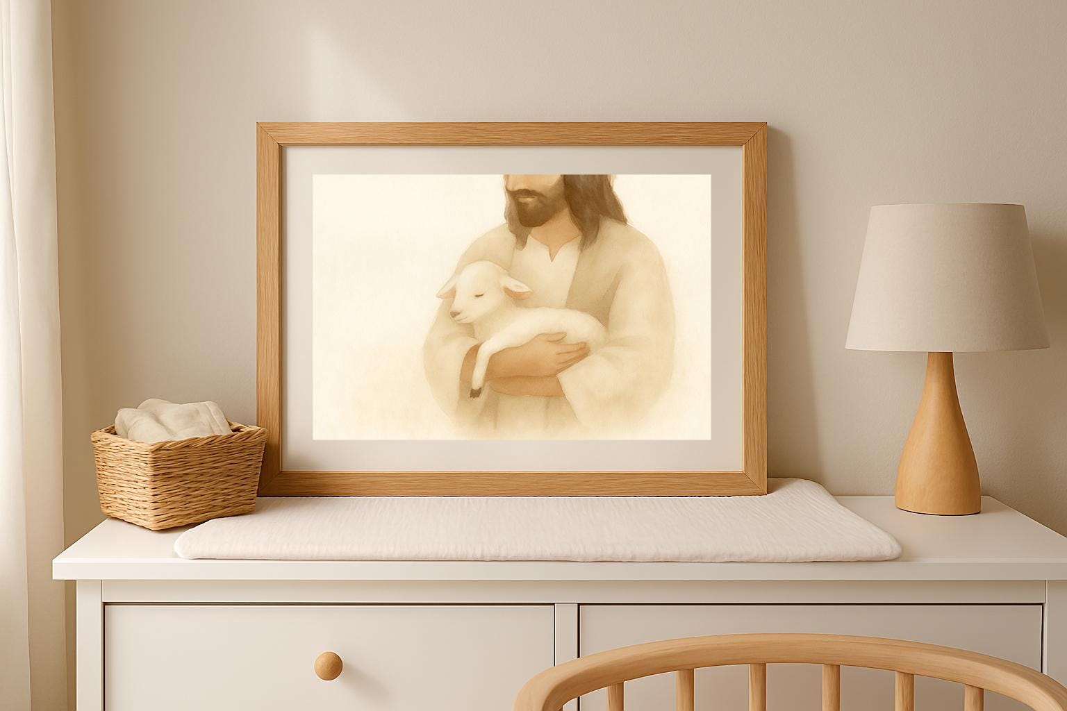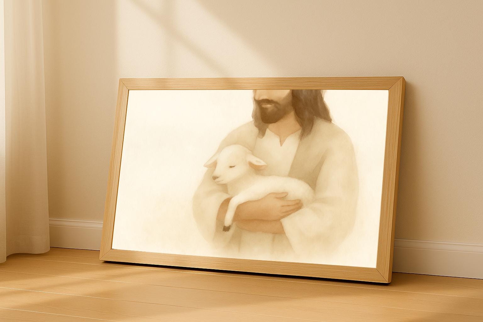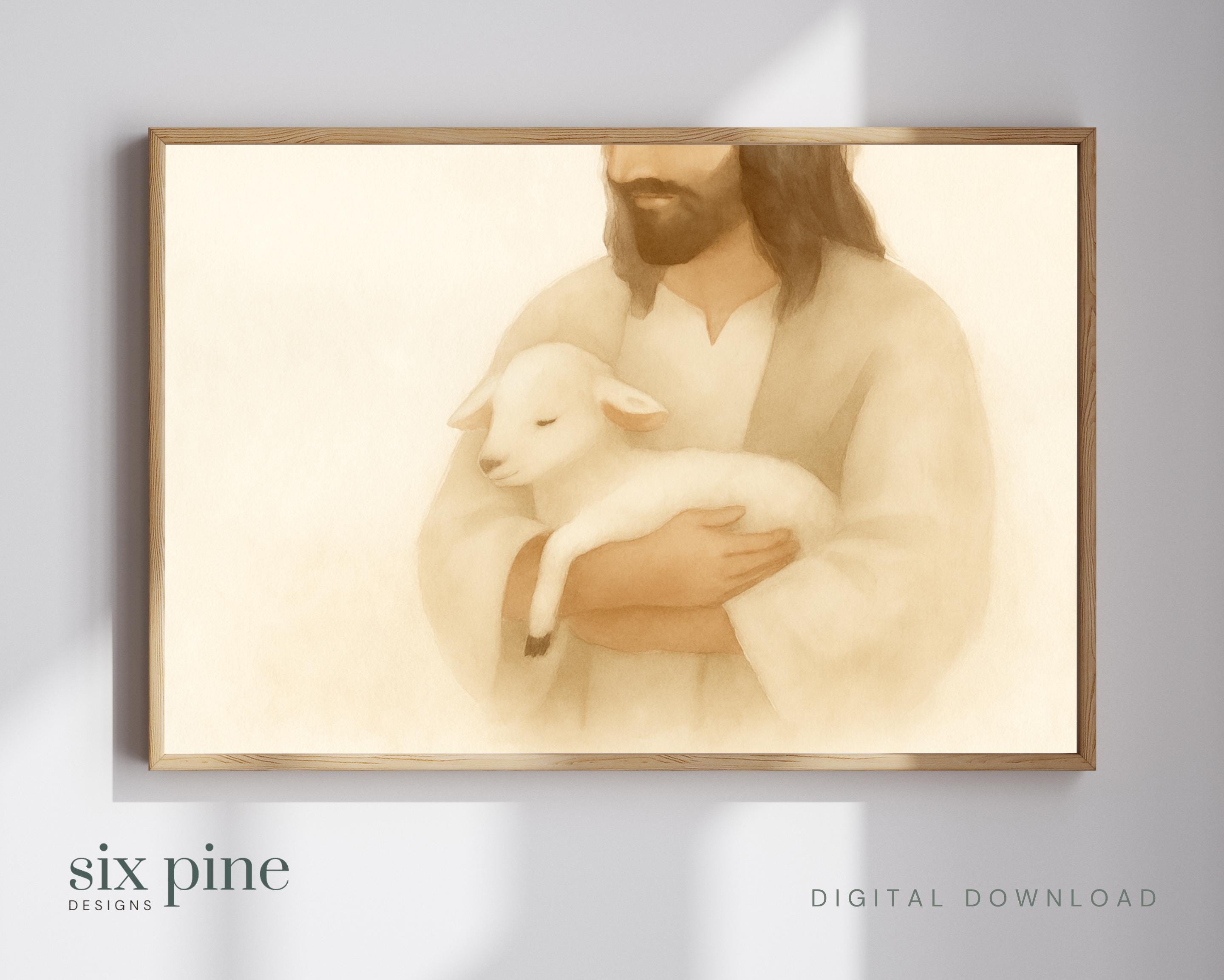 Jesus Holding Lamb in Horizontal Orientation in 5 different size ratios (DIGITAL DOWNLOAD) ready to download, print, frame, and enjoy!