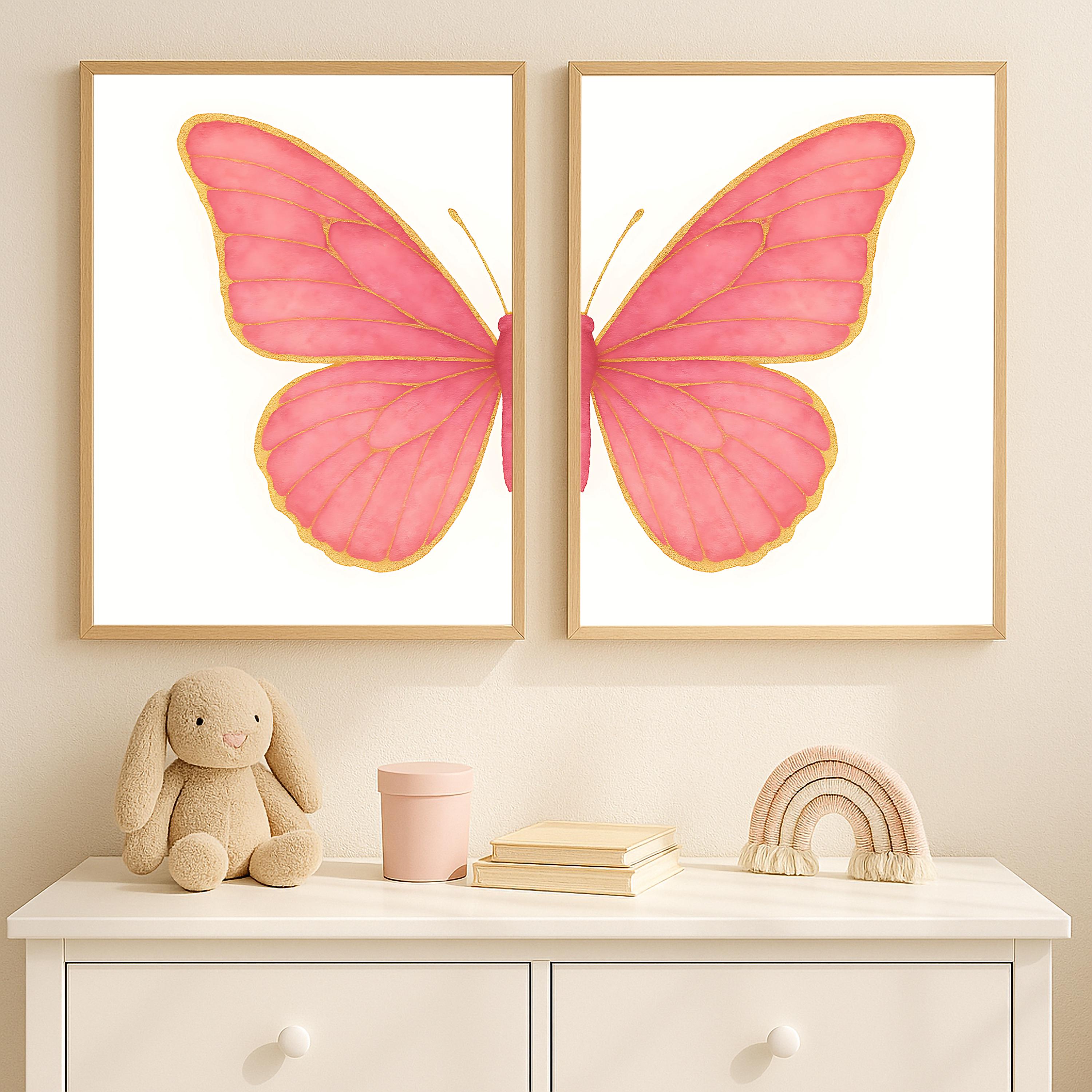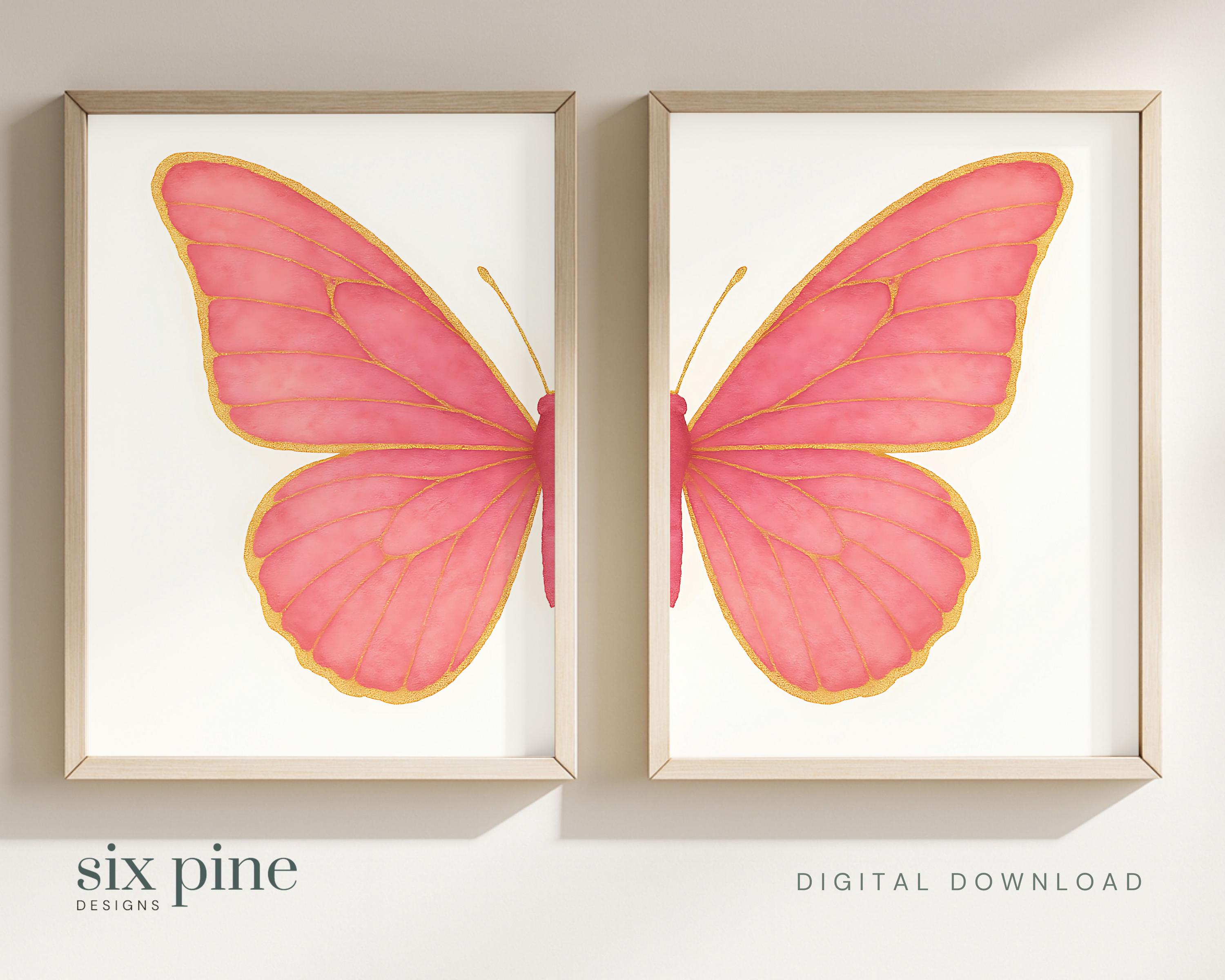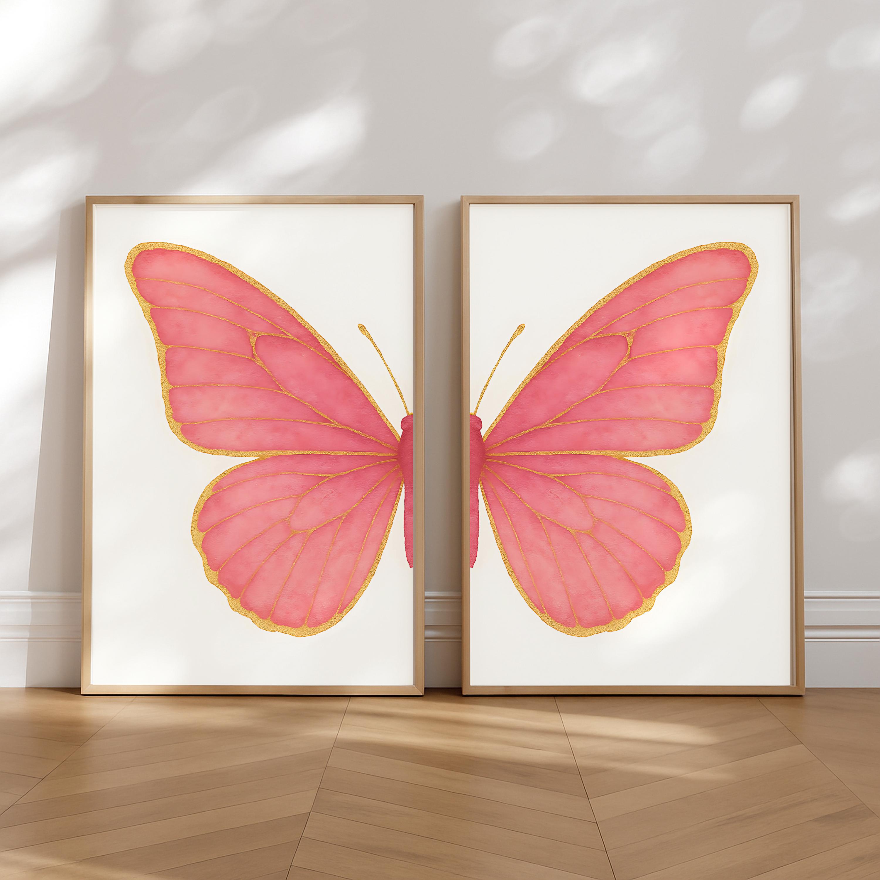 Set of 2 Pink & Gold Butterfly Prints in 5 different size ratios (DIGITAL DOWNLOAD) ready to download, print, frame, and enjoy!