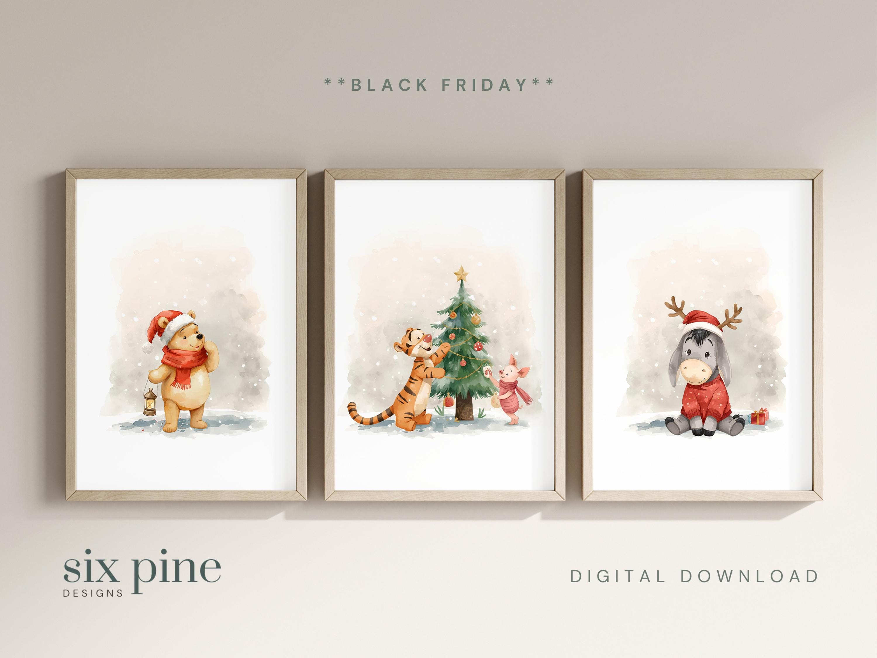 🖤 WHAT YOU GET Set of 3 Winnie The Pooh Christmas Prints in 5 different size ratios (DIGITAL DOWNLOAD) ready to download, print, frame, and enjoy!