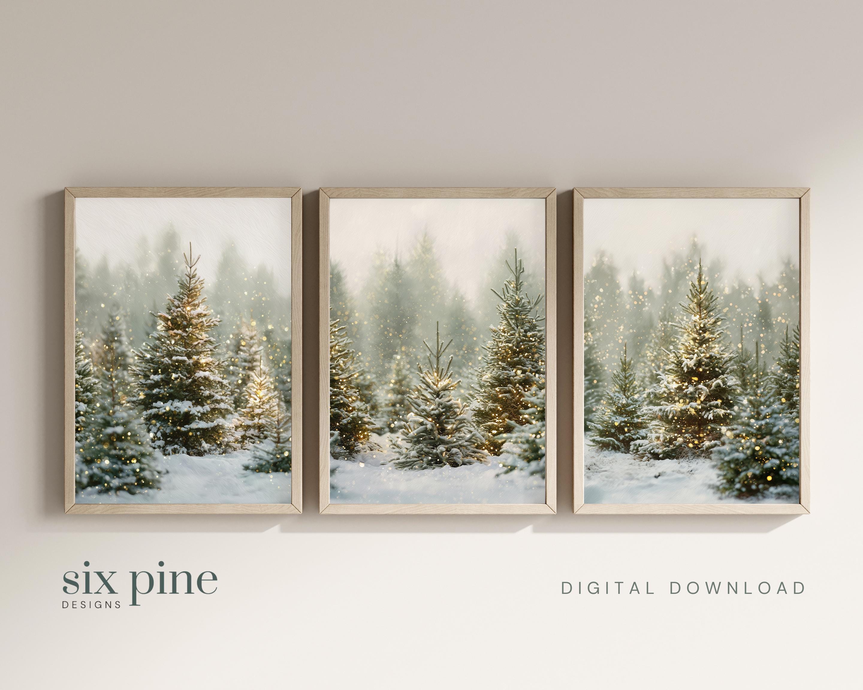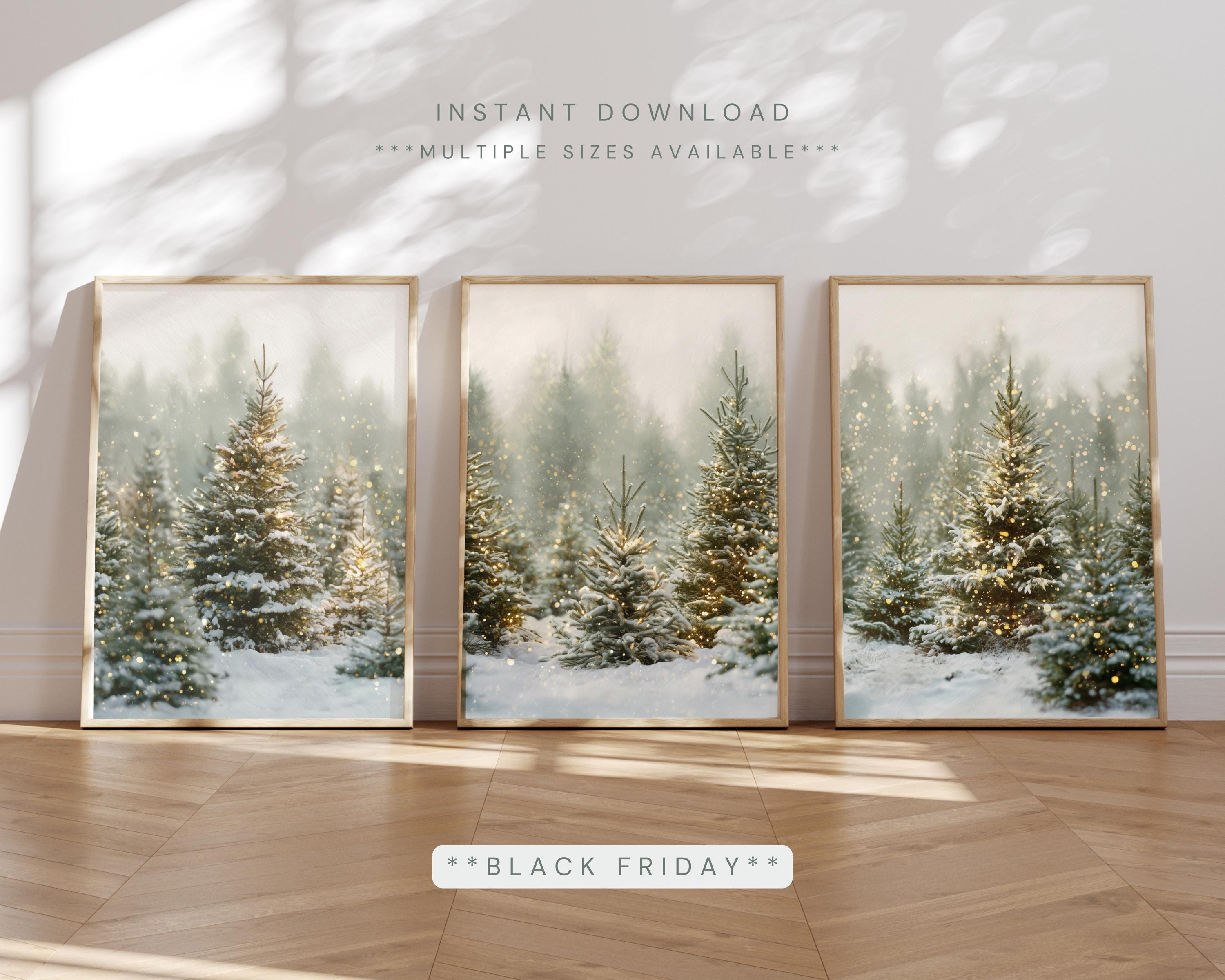 The set of 3 prints includes high-resolution digital files — ready for instant download and easy printing. Create your own magical holiday wall decor or gift it to someone who adores Christmas landscapes and rustic nature wall art.